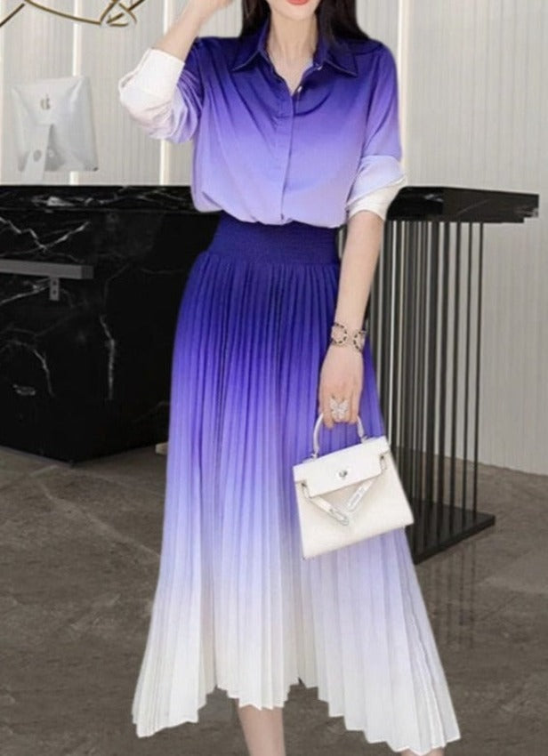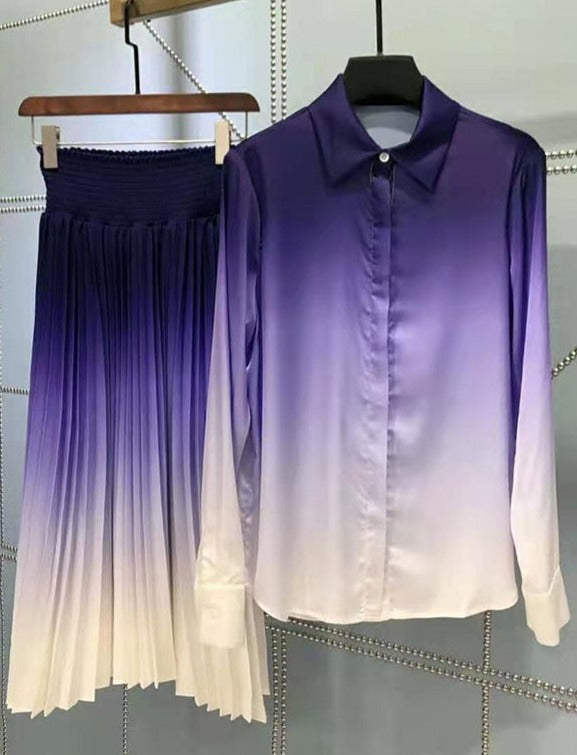 TODDOS GRADIENT SET includes pleated skirt & buttoned shirt. Crafted from quality silky polyester that pleasant to the skin.